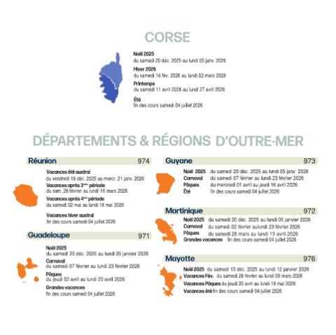 Fin des cours : samedi 07 février 2026 Fin des cours : samedi 14 février 2026 Martinique 972