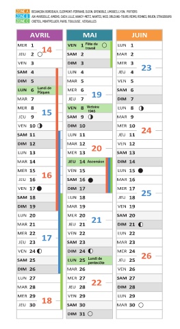 MER 14 03 SAM 14 SAM 14 MAR 14 JEU 14 Ascension DIM 14