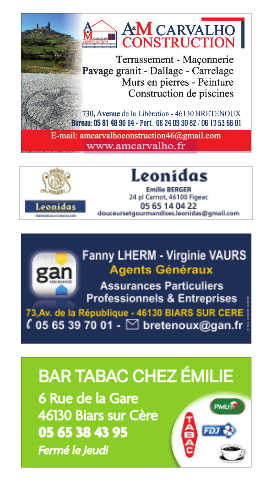 BAR TABAC CHEZ ÉMILIE 6 Rue de la Gare 46130 Biars sur Cère 05 65 38 43 95 Fermé le Jeudi