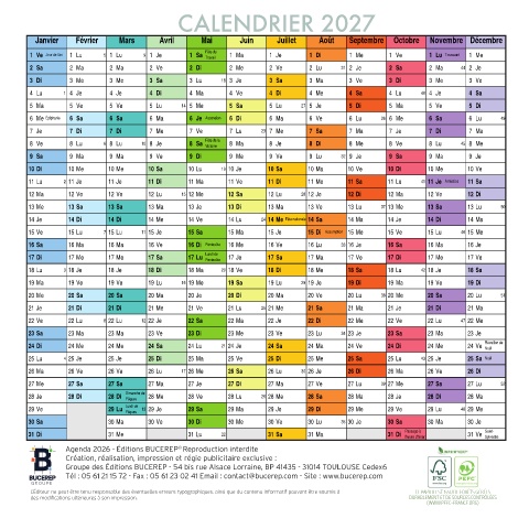 Agenda 2026 - Éditions BUCEREP © Reproduction interdite