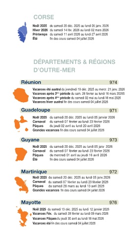 Vacances Fin des cours : samedi 20 décembre 2025 Carnaval du samedi 07 février au lundi 23 février 2026
