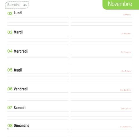 Novembre Semaine 45 02 Lundi Défunts 03 Mardi St Hubert 04 Mercredi St Charles 05 Jeudi Ste Sylvie 06 Vendredi Ste Bertille 07 Samedi Ste Carine 08 Dimanche St Geoffroy 8h