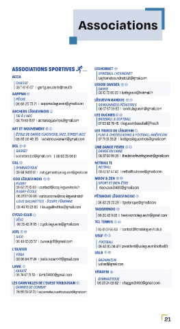 06 79 69 11 87 archersleguevinois@gmail.com BASEBALL & SOFTBALL 06 20 44 09 59 contact@ibo-toulouse.com 05 61 86 78 22 contact@entraide-partage.com